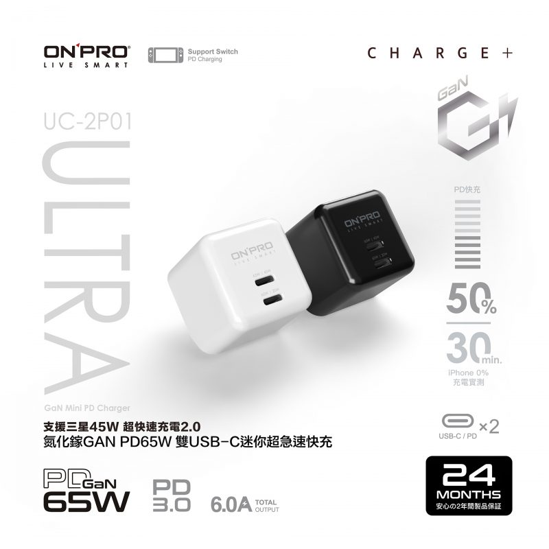 UC-2P01 ULTRA 氮化鎵GaN PD65W 快充超急速迷你充電器